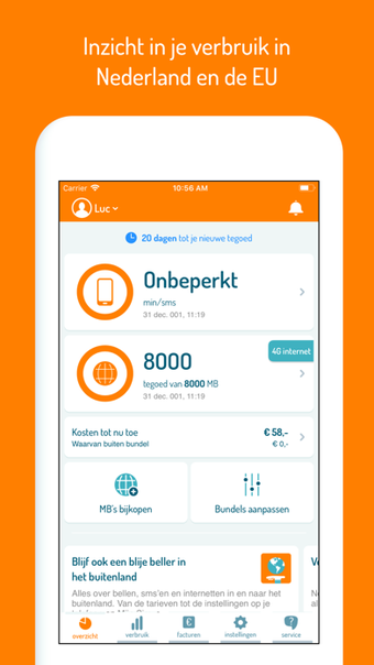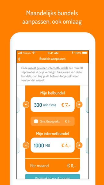 Mijn Simyo werkt op iOS 12.1.2 of hoger. De huidige versie van het programma is 3.56.0 en u kunt het alleen in het Nederlands uitvoeren.